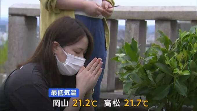 けさ(23日朝)の最低気温は岡山で21.2度、高松で21.7度とともに平年並みで、日中は各地で26度から28度まで上がりました。