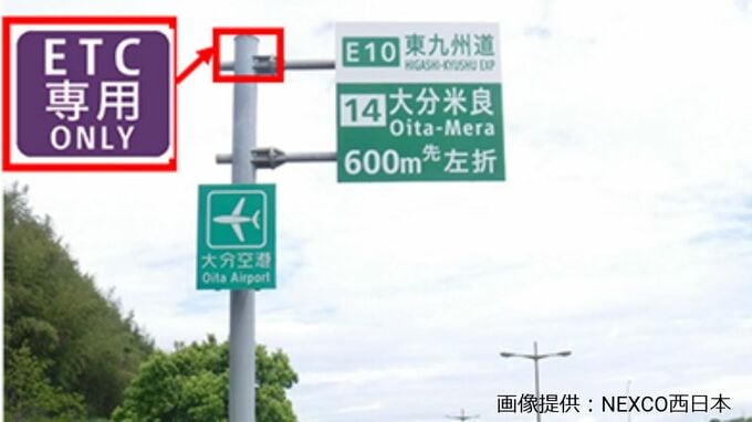 運用開始に合わせ、インターチェンジ付近の高速道路本線及び一般道の案内標識に、ETC専用の標示板を設置し、ETC車専用であることをわかりやすく表示する予定です。【画像④】
