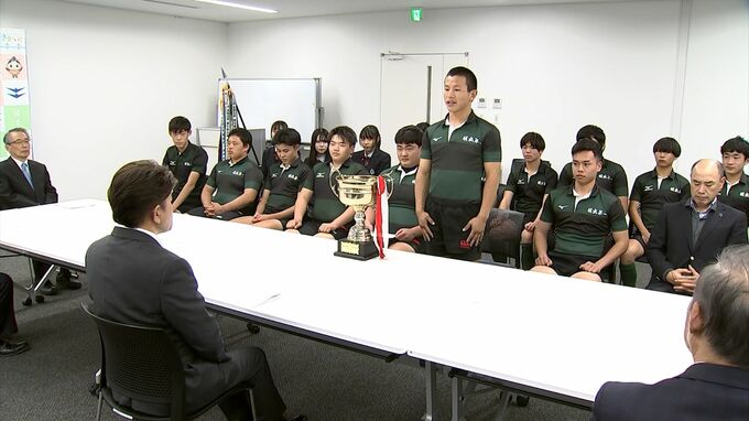 壮行会には坂出第一の宮田監督や中田副主将ら約20人が出席しました。坂出第一は、先月の香川大会決勝で高松北を破って3年ぶり5回目の花園出場を決めています。有福市長が「大いに期待しているので、がんばってきてください」と激励すると、中田副主将が「学校初の1勝、香川県勢初の2勝をあげたい」と抱負を述べました。