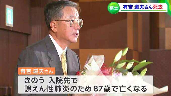将棋の九段でプロ棋士だった備前市出身の有吉道夫さんがきのう(27日)、誤嚥性肺炎のため入院先で死亡しました。87歳でした。