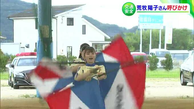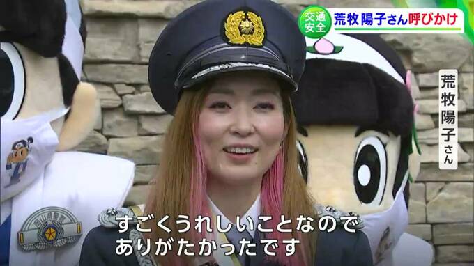 交通安全を呼びかけたのは岡山市出身で、現在はものまねシンガーとして活躍する荒牧陽子さんです。