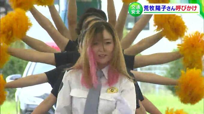 荒牧さんは「安心・安全で交通事故のない街になってほしい」と願いを込め、環太平洋大学の学生ら約70人と歌やダンスなどのパフォーマンスを披露しました。
