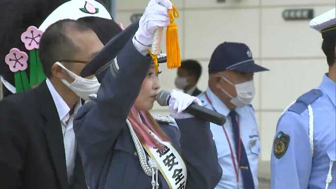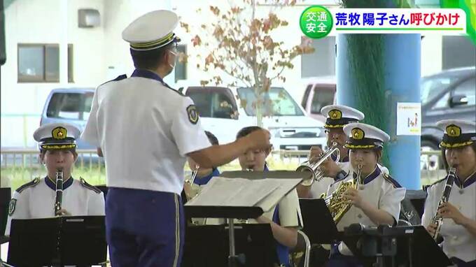 また、県警音楽隊による演奏も行われ、「横断歩道は左右を確認してから渡る」、「飲酒運転は絶対に禁止」などと呼びかけました。