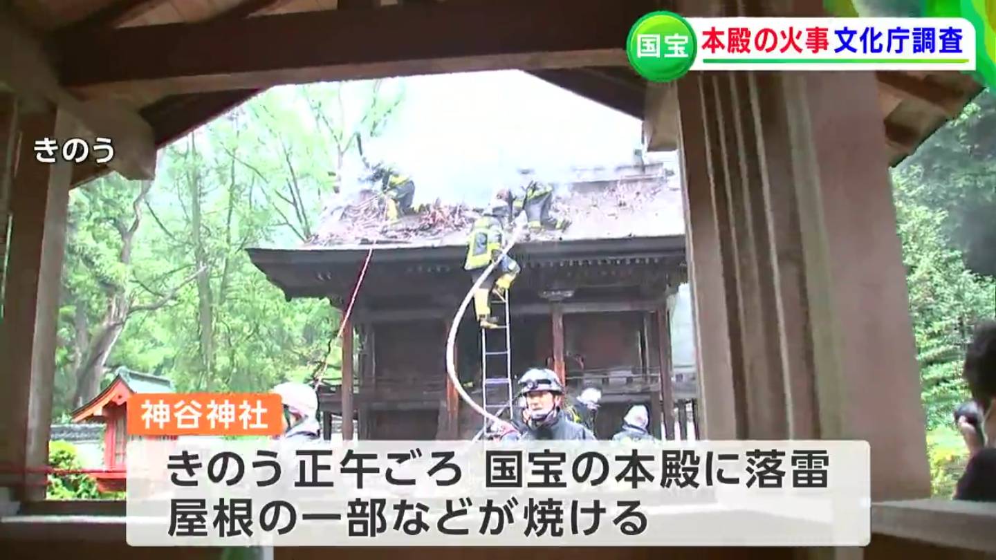 神谷神社では昨日(27日)正午ごろ、鎌倉時代初期に作られた本殿の屋根に雷が落ち出火、屋根の一部が焼けました。