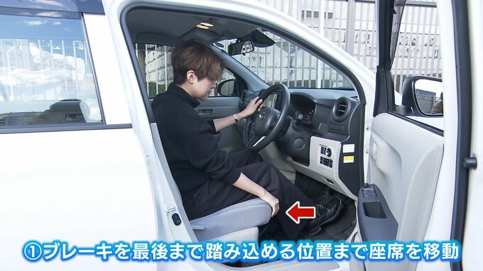①ブレーキを最後まで踏み込める位置まで座席を動かし