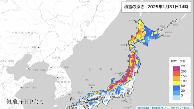 31日06時現在の積雪の深さ(アメダスによる速報値)