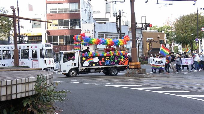 この取り組みは、LGBTQ+当事者やその支援者=「アライ」などが、性の多様性を訴え街なかを行進するもので、昨年、中国地方で初めて行われました。