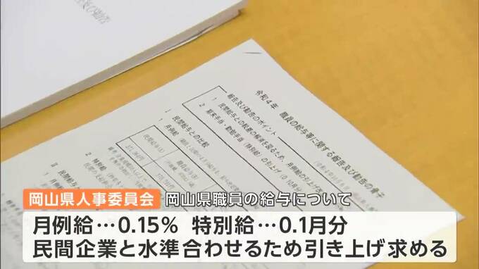岡山県人事委員会は、県職員の給与とボーナスについて「3年ぶりに引き上げる」よう、知事らに勧告しました。