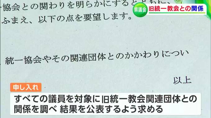 2人によりますと、旧統一教会の関連団体が開いたピースロードの役員名簿に複数の議員の名前が記載されるなど、関係団体と議会との関りは根深いとしています。