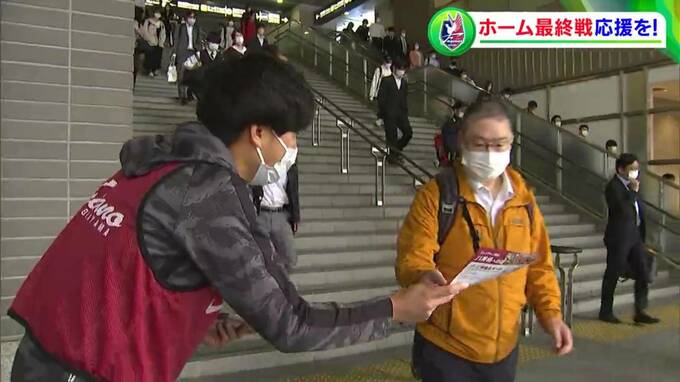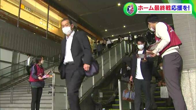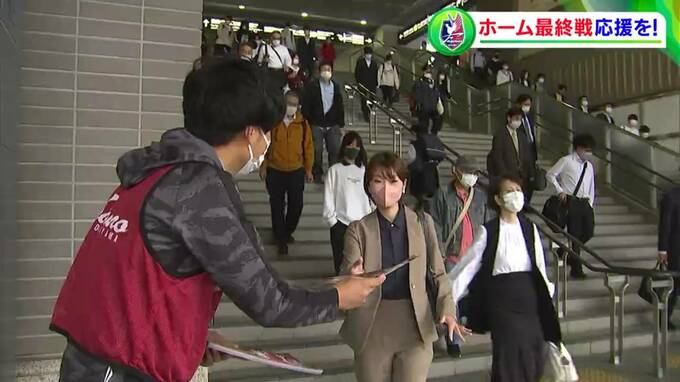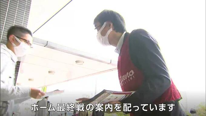 「ホーム最終戦の案内を配っています」