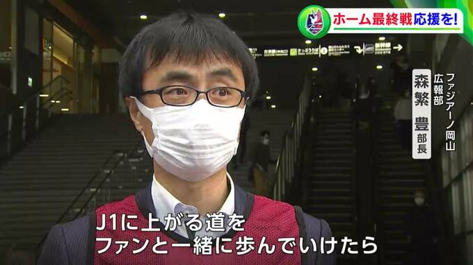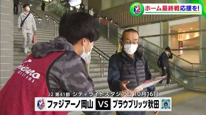 サッカーJ2・ファジアーノ岡山は、「J1昇格に向けた戦いを一緒に盛り上げてほしい」とJR岡山駅前で、10月16日のホーム最終戦の観戦を、と呼びかけました。