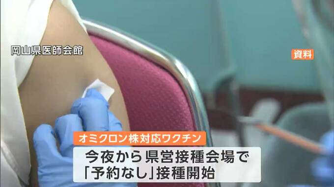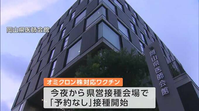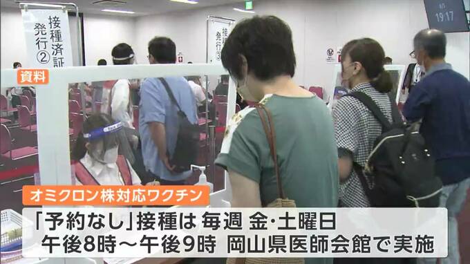 予約なし接種は毎週金曜日と土曜日の午後8時から9時まで、岡山県医師会館で行われます。
