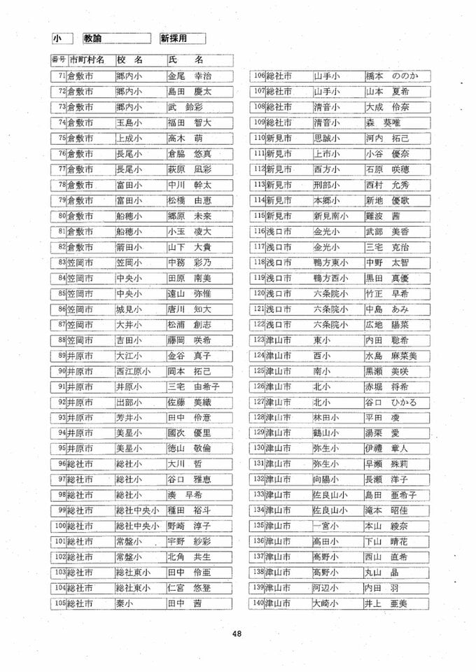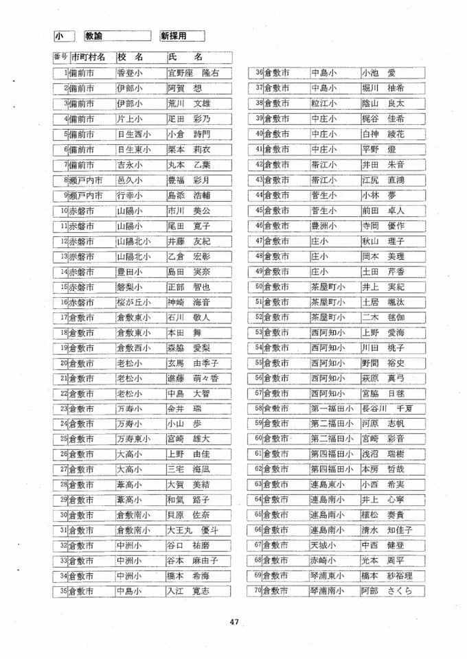 小学校の新採用となった教諭は、以下の通りです(敬称略)。