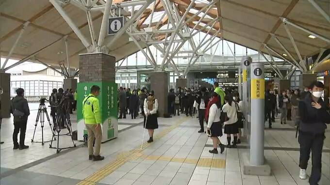 JR岡山駅で行われた、点字ブロックの歩行体験です。