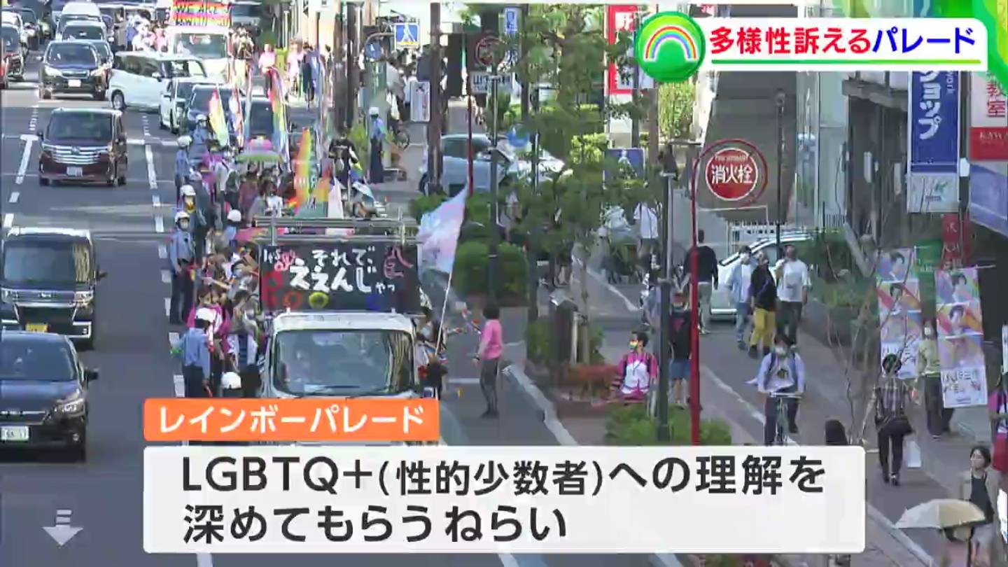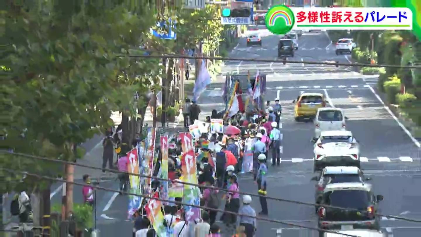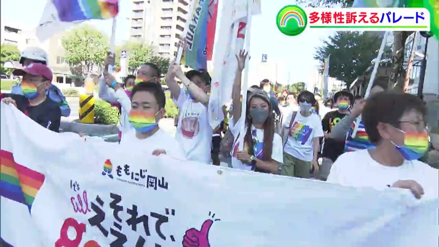 LGBTQ+=性的少数者への理解を深めてもらいたいと、当事者や支援者らによるパレードが岡山市中心部で行われました。
