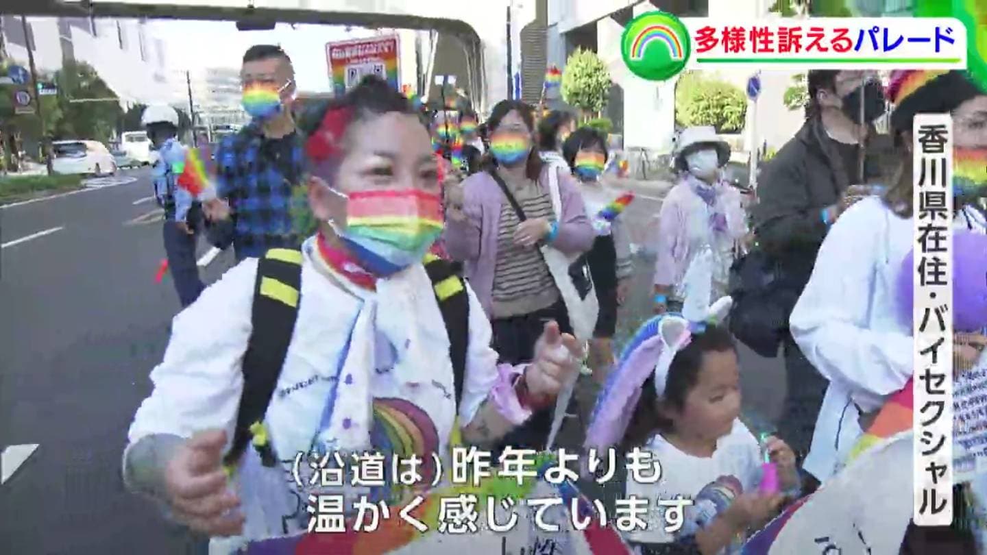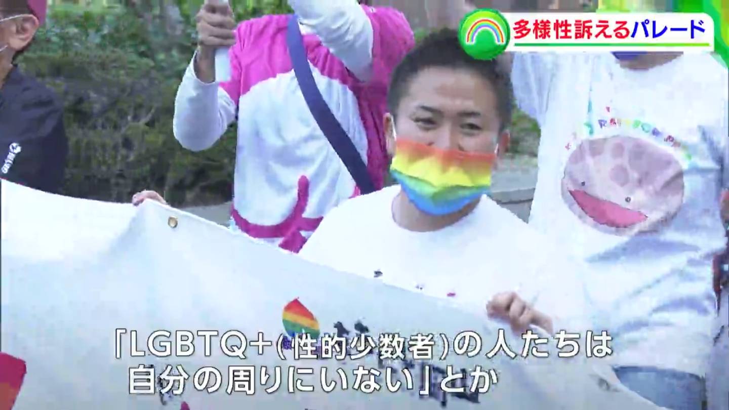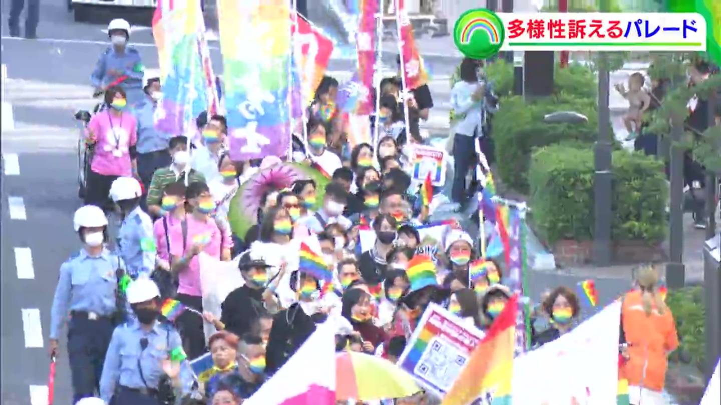 LGBTQ+=性的少数者への理解を深めてもらいたいと、当事者や支援者らによるパレードが岡山市中心部で行われました。