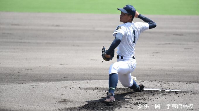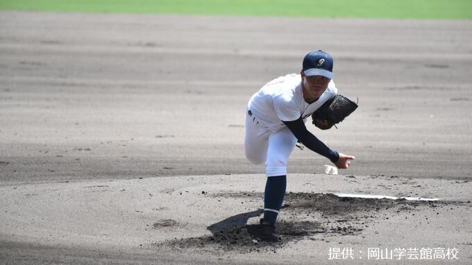 金村投手は沖縄県出身で、岡山学芸館高校では1年春から登板し、2年秋の岡山大会で優勝。3年生夏の岡山県大会では決勝戦で西純矢投手(現阪神)を擁する創志学園に敗れ準優勝でした。