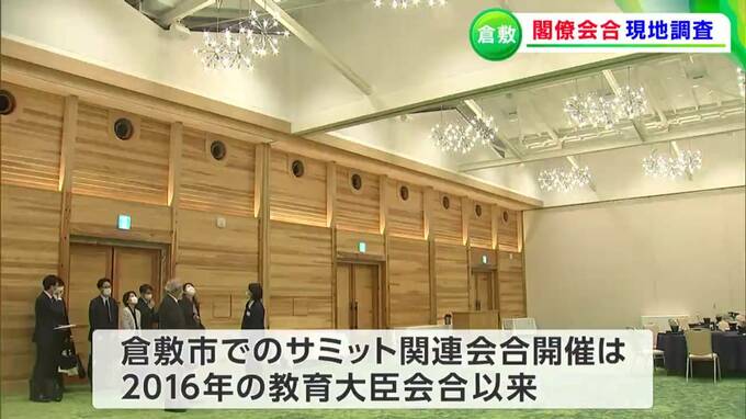 G7広島サミットの関係閣僚会合として、来年4月「労働雇用大臣会合」が倉敷市で開かれます。その会場となる倉敷アイビースクエアで、関係機関による現地調査が始まりました。