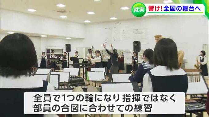 一般的には「指揮者を前に楽器ごとに並んで演奏する」ところを、「全員で1つの輪になり、先生の指揮ではなく部員の合図に合わせて演奏」します。