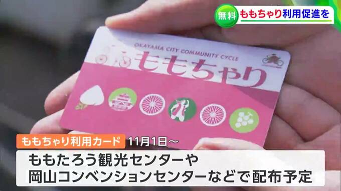 「500円相当の利用カードを無料配布」9年目のコミュニティサイクル “ももちゃり” リニューアルされる岡山城などめぐって!【岡山市】 2022年10月25日(火) 17:30 岡山 岡山市のコミュニティサイクル「ももちゃり」の『500円相当の利用カード』が、来月から無料で配られることになりました。秋のイベントが相次ぐ時期に配ることで、コロナで落ち込んだ利用者の増加と回遊性の向上を…