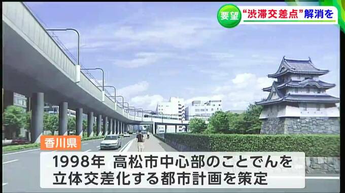 線路と5本の道路が交差し、慢性的な渋滞が発生するのが高松市本町の“ことでん本町踏切”です。交差点を改良したいと、香川県の池田知事は道路を高架化する案を国に要望しました。