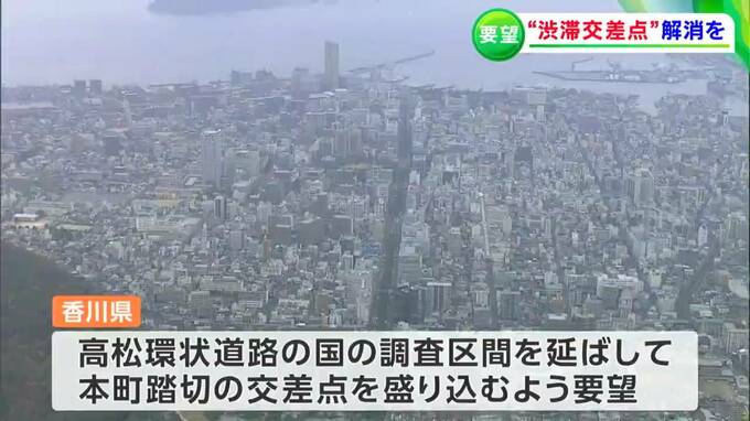 国への要望の中で県は、高松空港と高松市街地を結ぶ“高松環状道路”の国の調査区間を延ばして、本町踏切の交差点を盛り込むよう求めています。