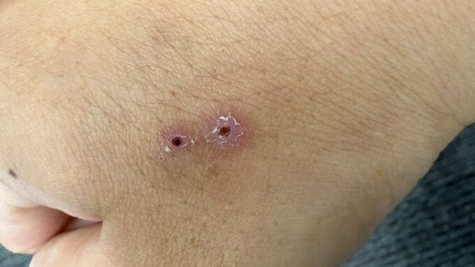 同僚の記者が、海釣りをしていて露出していた足首が【画像⑤】のような状態に。