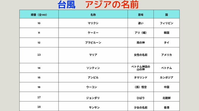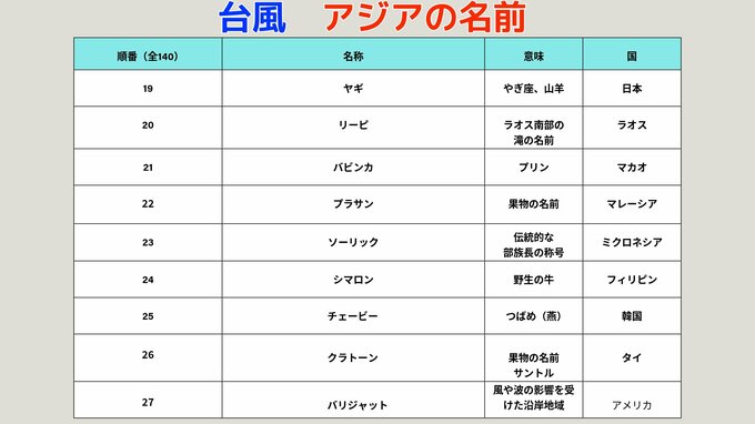 そして、全部見せます!アジア共通の台風の名前が以下の一覧【画像④~⑲】です。