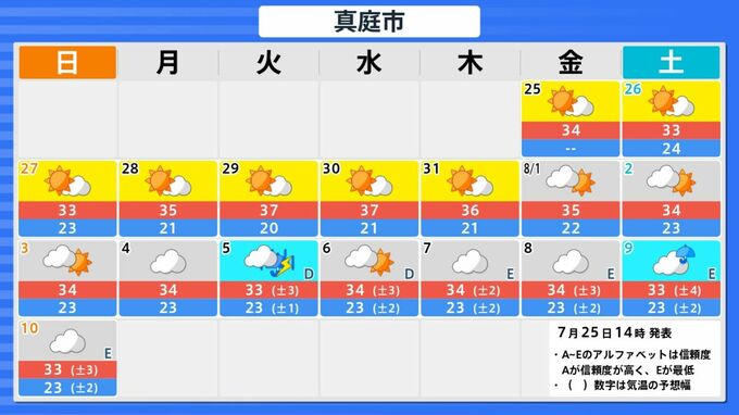 花火大会が開催される26日の気になる天気は?【画像②】は、25日(金)時点の真庭市の今後16日間の天気の予想です。