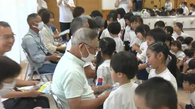 急増する特殊詐欺の被害を防ごうと8月の年金支給日を前に、岡山市中区の子ども園で園児の祖父母に向けた啓発活動が行われました。