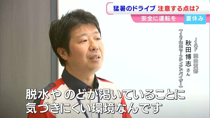 「これだけ暑いと、車内だと結構エアコンが効いていて脱水やのどが乾いていることに気づきにくい環境なんです。さらに周りのガラスから直射日光が入ってきて体には相当負担がかかっている状態なので」