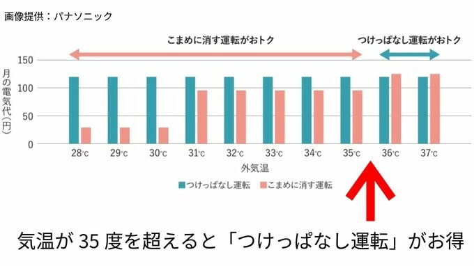 室温が上昇しやすいため「つけっぱなし」運転が節約効果あり