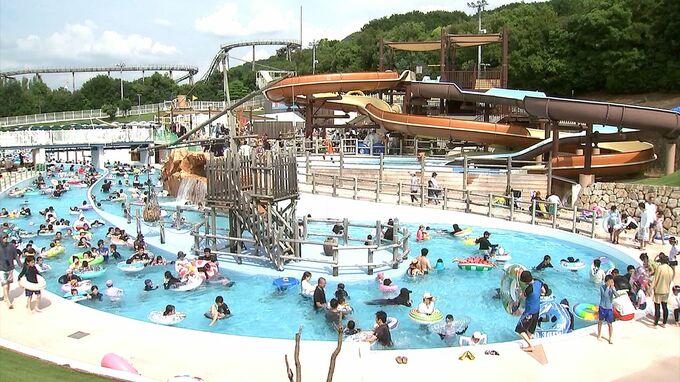 岡山・香川は天気が回復し、厳しい日差しと猛暑が戻ってきました。香川県丸亀市にあるテーマパークのプールは、涼を求める多くの人でにぎわいました。