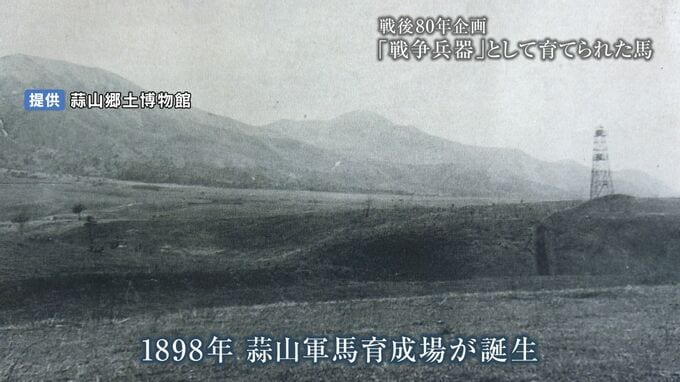 1898年。蒜山に誕生したのは、戦争で使うための馬=軍馬の育成施設です。日清戦争に勝利しさらなる勢力圏の拡大を図っていた政府が、軍事力の強化を目的に設けました。蒜山ではこの広大な敷地で、2歳から4歳ほどの馬・数千頭が飼育され、戦場に送られたと考えられています。
