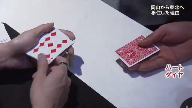 「いまおまじない掛けたんで、僕の持っているカードは赤です。お客さんの手元のカードをめくってみてください」