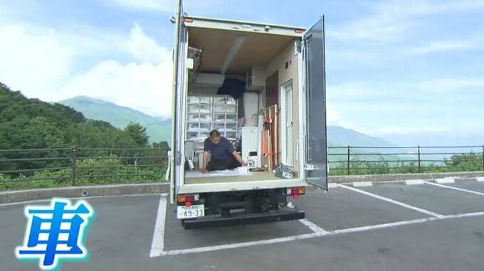 武久さんがいる場所、実は工房やスタジオなどではなく、車の中。キャンピングカーでもキッチンカーでもない、その場で絵が描けるアトリエカー【画像④⑤】です。「日本画の道に進む」と決意して特注で作りました。