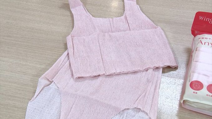 9月1日の「防災の日」を前に岡山高島屋で始まった催しで、期間中、約80種類の防災グッズが並びます。こちらは、衛生面を考え、紙でできた使い捨ての下着です。