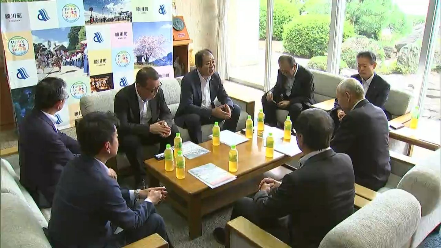 各地の放送局と協力して地域の祭りを紹介する番組を制作している大阪市のダイドーグループが、香川県綾川町の祭りを取り上げることになり、綾川町役場を表敬訪問しました。