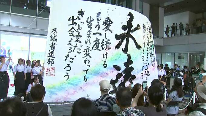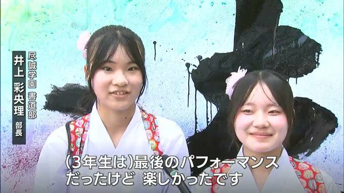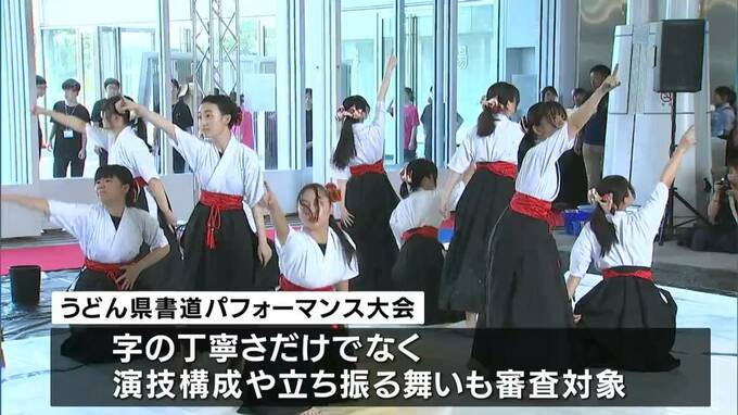 毛筆とダンスなどが融合した”うどん県書道パフォーマンス大会”です。毎年恒例となった大会ですが、今年は香川県内から20校の書道部が集まりました。審査は字の丁寧さだけでなく、演技構成や立ち振る舞いも対象になります。生徒たちは、息の合ったパフォーマンスにあわせて筆を走らせ、大きな紙に1つの作品を仕上げました。
