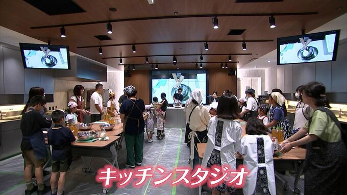 料理教室やイベントを開催できるキッチンスタジオ【画像⑤】も備えています。きょうは子どもたちがピザづくりを体験しました。