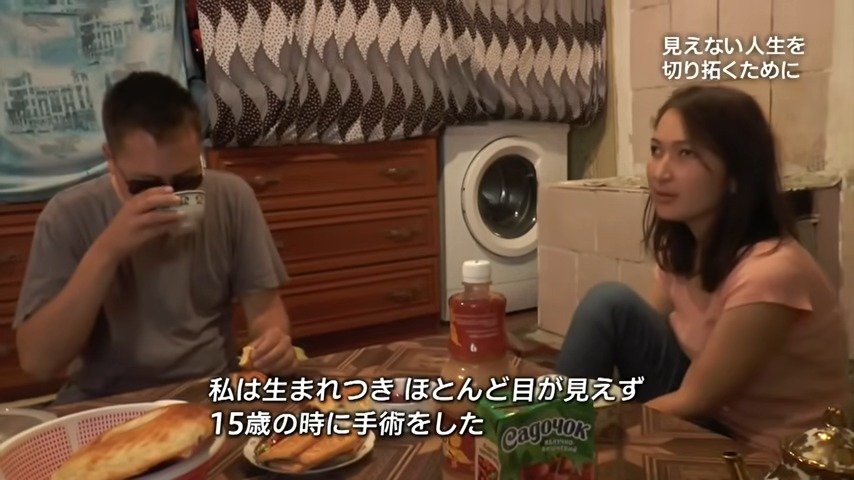 アザマットさんを支えるのは、妻のジルディズさん。実は彼女も、ほとんど目が見えません。