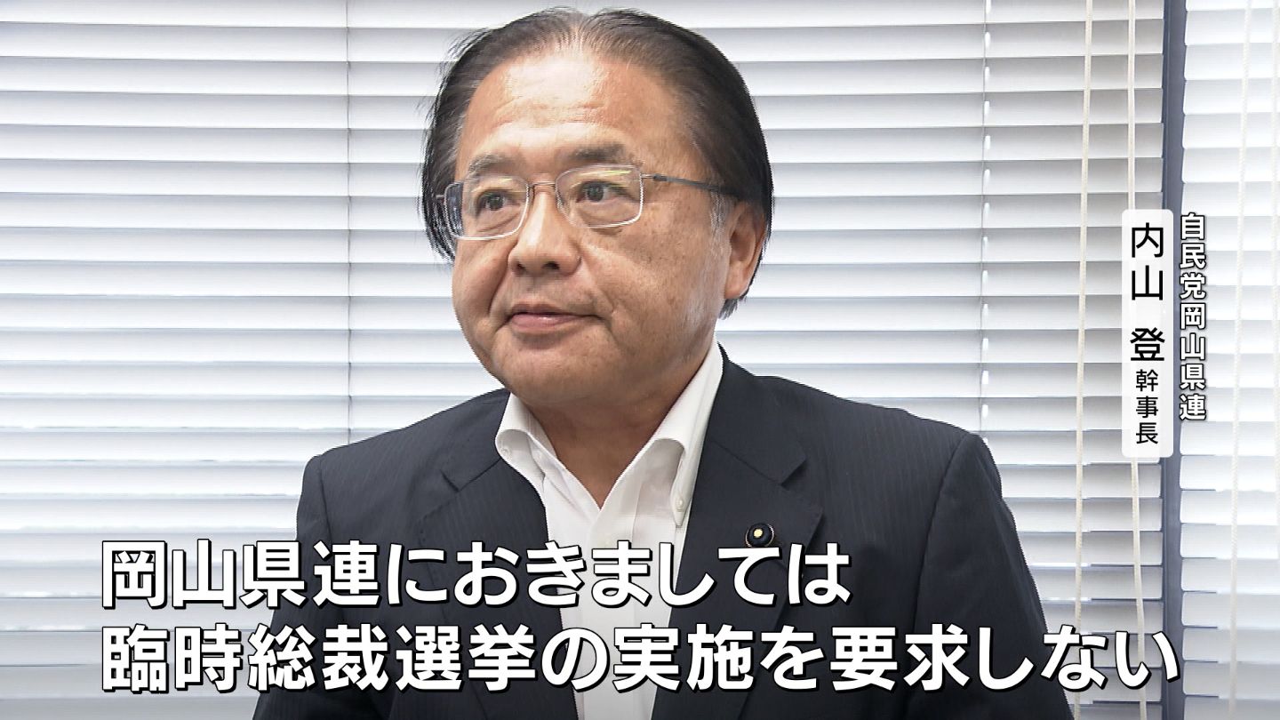 「岡山県連におきましては臨時総裁選挙の実施を要求しないということで、さきほど常任総務会で決定しました」