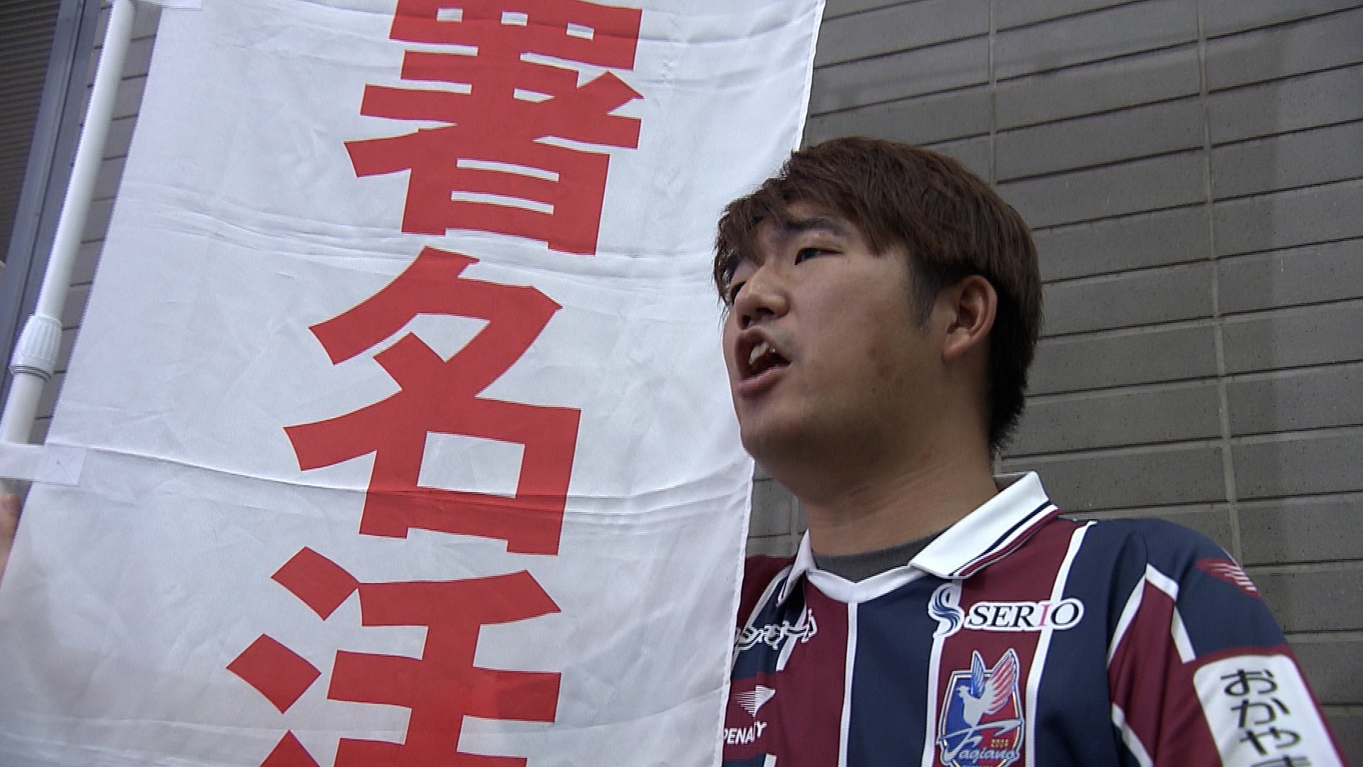 「岡山の新スタジアム整備のための署名活動を行っています。よろしくお願いします、本日最終日となっています」