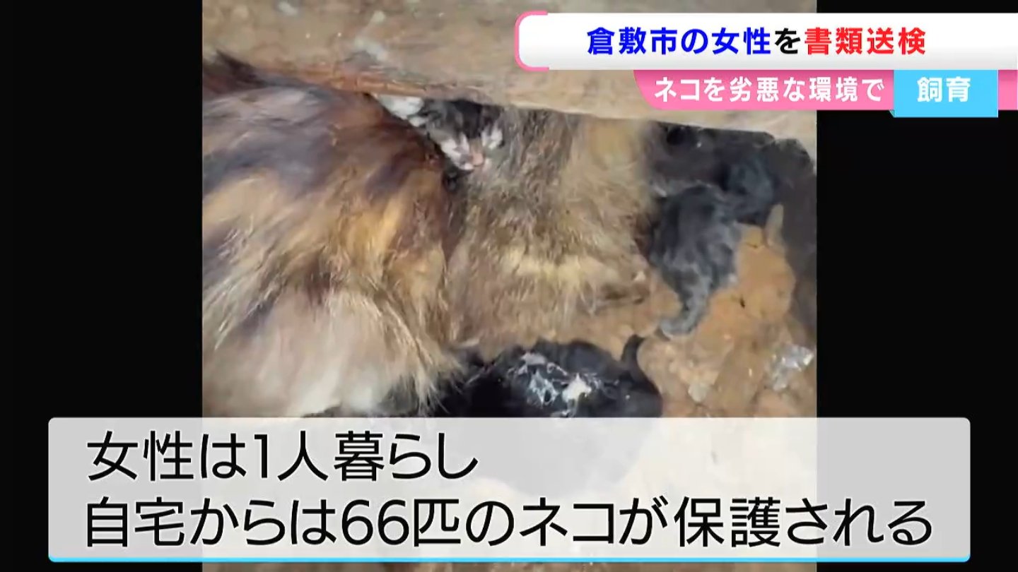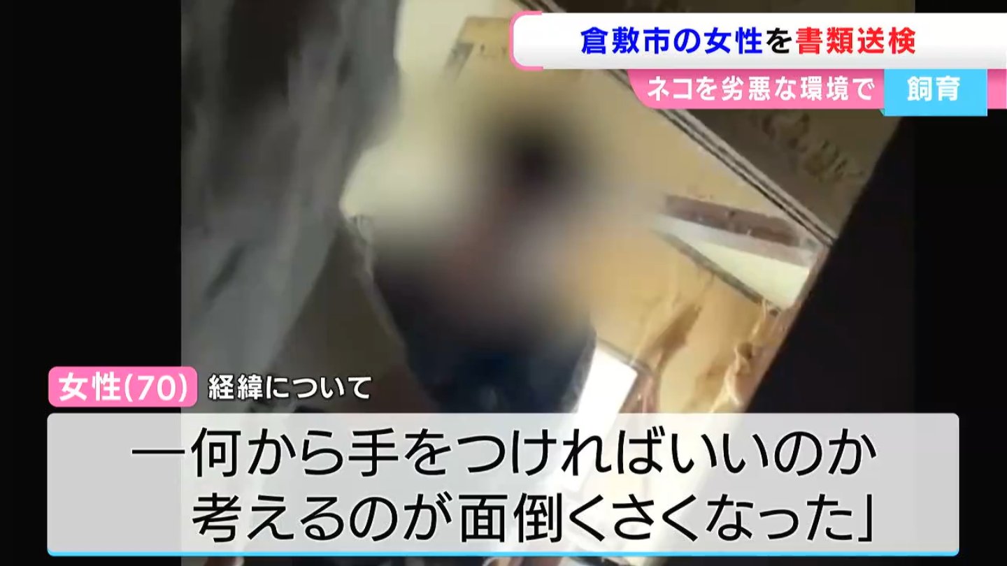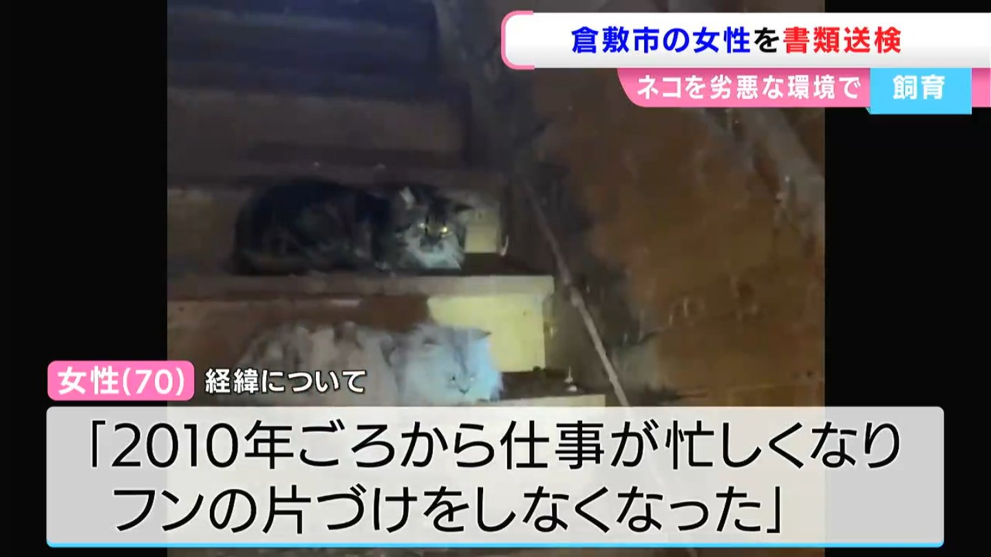 以前イブニングニュースでは、倉敷市の民家で起きた「ネコの多頭飼育崩壊」についてお伝えしました。その飼い主の高齢女性が、劣悪な環境でネコを飼育していた疑いで、きょう(3日)書類送検されました。