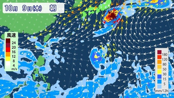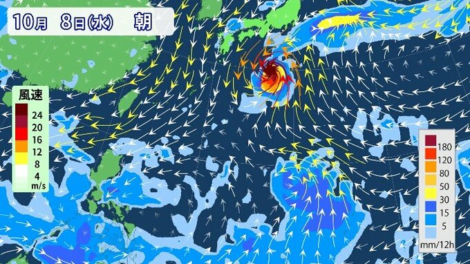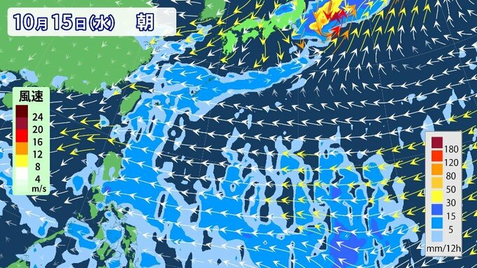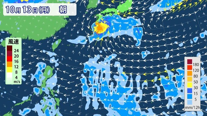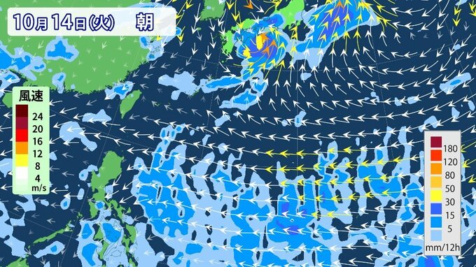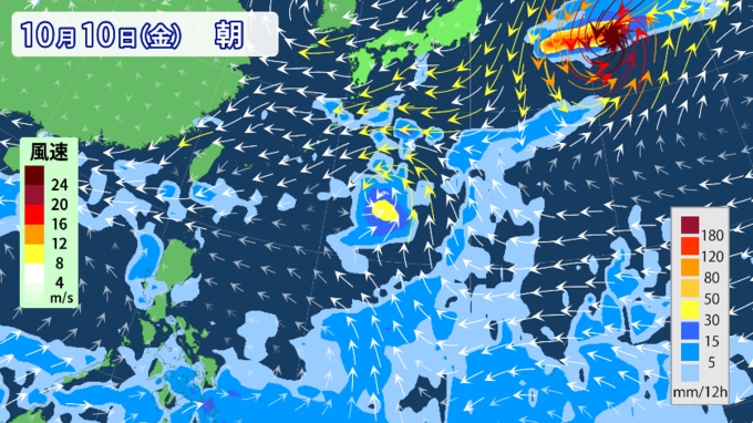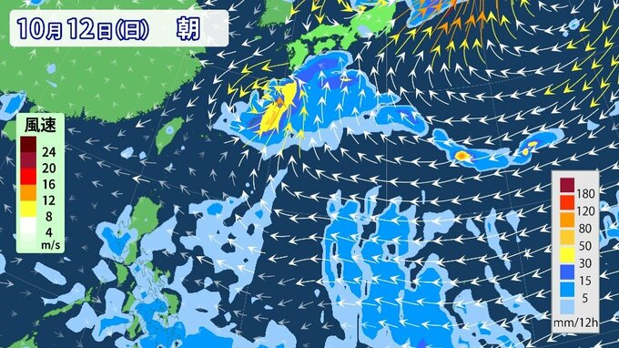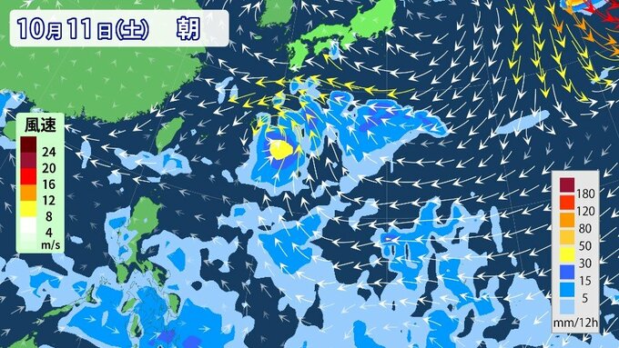 「雨と風の予想によりますと、反時計回りの渦は中心付近の風が強まりながら、今週土曜日に南西諸島付近に位置する見込みです。