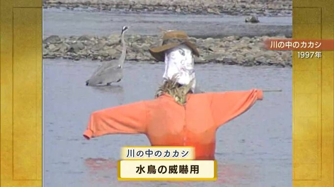 ヒントは、川の中の魚…「鮎」とその鮎を狙う水鳥。水鳥対策に立てられたものでした。この場所は鮎の産卵場所ですが水鳥に鮎が食べられて壊滅状態になった年もあったそうです。効果は絶大でたくさんの鮎の姿が確認されました。川で働くカカシの話題でした。