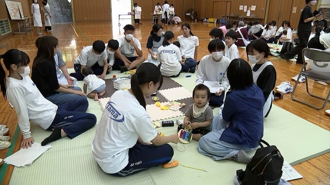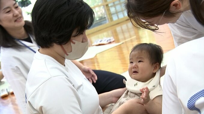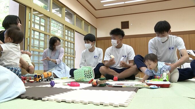 「中学校なんですが、きょうは赤ちゃんも登校しています。中学生と赤ちゃんが触れ合うことで、命の大切さを学ぶ授業が行われています」