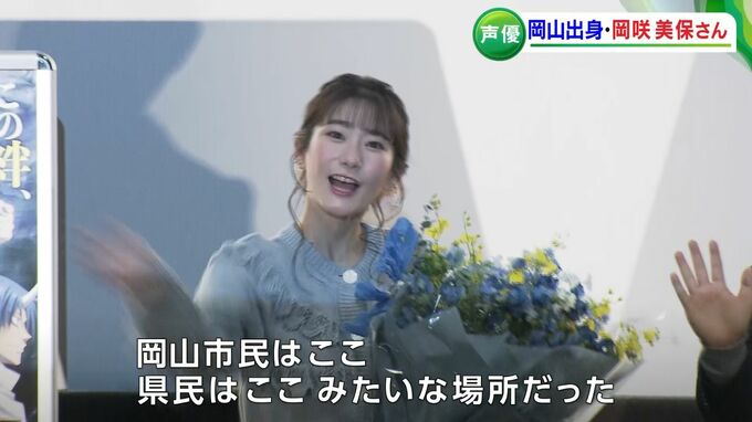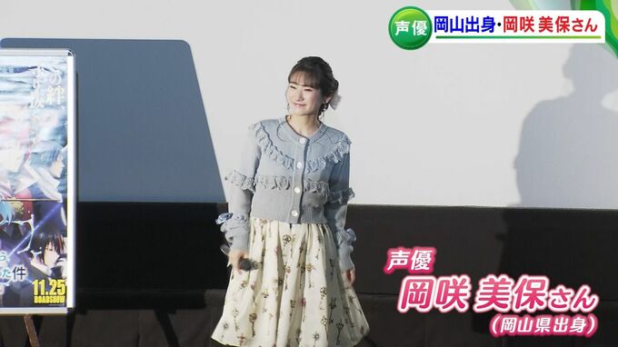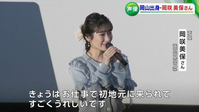 11月27日、イオンシネマ岡山にやってきたのは、岡山県出身の声優・岡咲美保(おかさき みほ)さんです。会場には400人が集まりました。