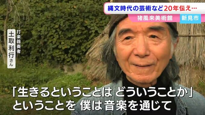 土取さんは、日本の音楽のルーツを追い求めていて、同じく太古を追求する美術館の節目を演奏で祝いました。
