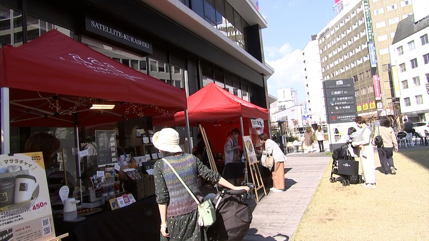 キッチンカーや移動販売を行う10の飲食店が弁当やデザートなどを販売。中央通りに面した場所でのマルシェには多くの人が訪れていました。
